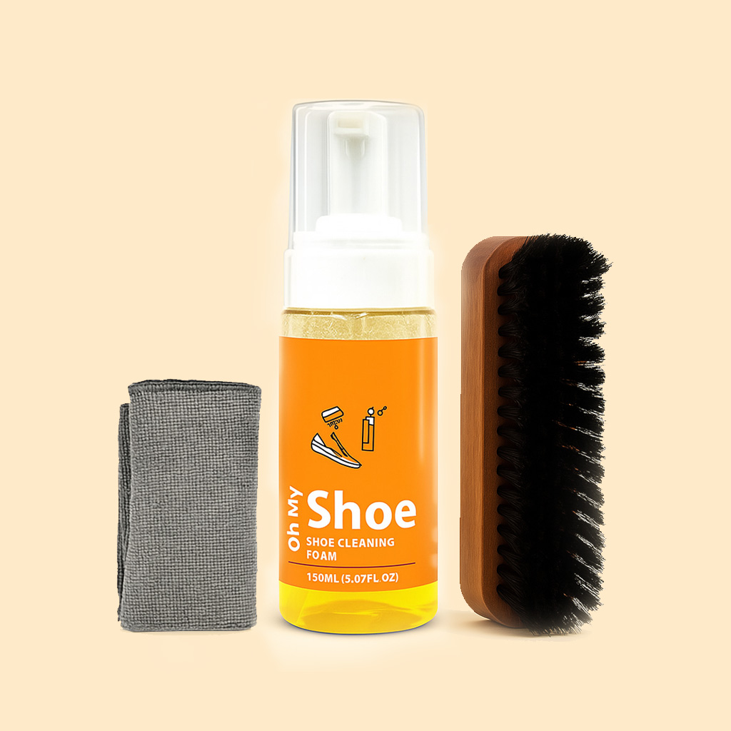 Nope! That’s the beauty of it. Oh My Shoe is a waterless foam formula, so you don’t need a sink, bucket, or any extra hassle. Just pump the foam directly onto the shoe, wipe it down with a clean cloth, and you're done. If you're dealing with stubborn dirt or textured soles, you can use a soft brush for a deeper clean — but it’s totally optional.